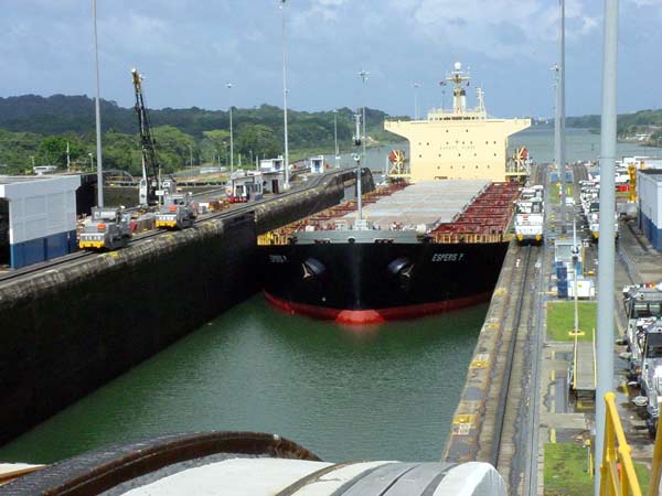 These days ships are build with only one limitation. The Panama canal. It is 30 meters wide and the locks are 300 meter long. Ships fit in with only a few centimeters to spare. Six large locomotives pull and push the ship through the locks.