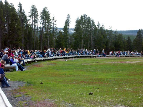 It might not be the most spectacular geyser of Yellowstone NP. It is the most reliable. Exactly on time (90 min. interval) it spit out it's bad breath. Many were waiting.