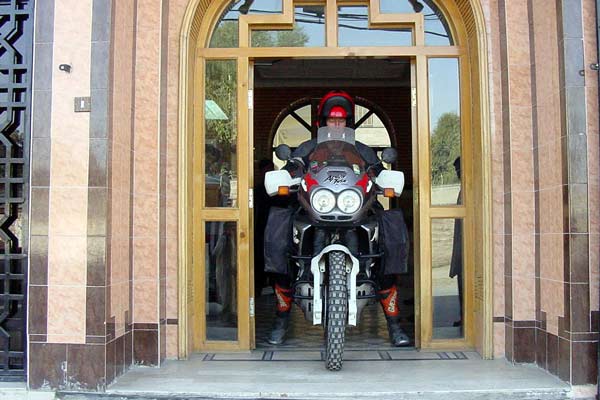 Motorbikes like Pam do not exist in Pakistan. People think it is either a spaceship or a time-machine. This is fun for a while, but you can not leave your bike unattended. Property-rules are different and anybody who is curious how it feels to sit on a bike like that, will try it out. Naturally Pam is a lot heavier then the local 100 cc mopeds and soon she falls over.
