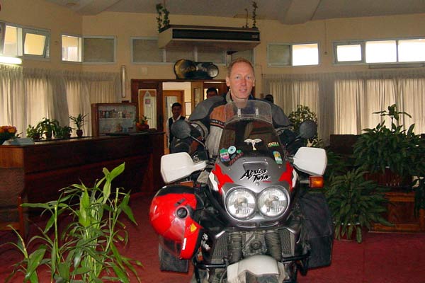 Bangladesh is a country that has not yet discovered tourism (or visa versa) and as a result there are no cheap hotels. Luckily the 5-star hotels are still very affordable and management understands the needs of lonely travelers. Since a discount was not possible they tried to ease the price with a free diner and a free breakfast. Pam was comfortably parked in the carpeted restaurant.