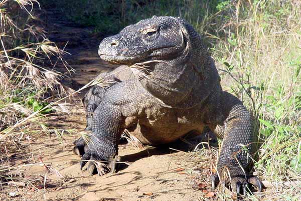 A few more minutes in the sun and this Jurassic leftover will be very dangerous. They are cold-blooded, so as long as they are cool, things are cool. This 150 Kg, 4 meter long lizard could kill me with one blow of his 10 cm claws, or he could bite me and leave me to die since there is no known antivenin against his lethal saliva.