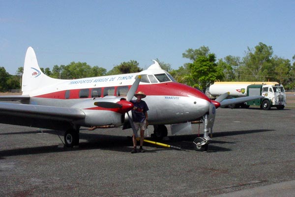 Pam took a boat to Darwin, Australia, but since I was not allowed on board of the freight boat (as usual) I settled for a plane ride in this very old, flubbering and flappering piece of sheet-metal.