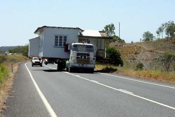Only in Australia you can see this. Many houses are build in the 'house yard'. After being assembled they are simple transported to their 'more permanent location'.