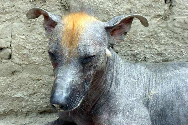 Believe it or not, this is not a genetically defected or mutated dog. This is a pure bred naked Inca dog. It looks horrible, but at least it does not have flees.