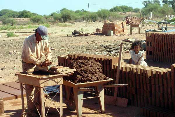 Hand molded, sun dried bricks, made out of local clay.