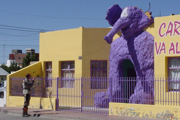 For months everybody who did not study medicine, told me that the anti-malaria-drug 'Lariam' I was taking was worse then the malaria it prevented. (A stupid thing to say if your not a doctor.) I always replied that I had no psychosis or hallucination of any kind except the regular visits of my friend Hugo, a invisible purple elephant that sings opera. Finally, in Patagonia, I caught him on photo for all skeptics to see.