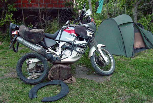 A serious blowout never just happens. It always happens when you really don't need it (if that is ever the case). It happened to me during one of the famous Patagonian dust storms. The tire was beyond repair and I had to hitch a ride back with Pam in a dump truck.