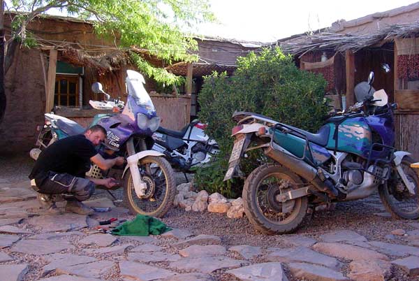 Our little adobe guesthouse was full with Africa Twins. I met Peter and frank while waiting for the copper mine to open. Later we would meet again.