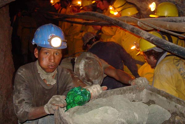 Dressed in old rags with a cloth to filter the air he breaths this Bolivian miner will not live longer then about 30 years. A sad story.