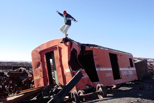 I am lousy at regular surfing, but train-surfing is my thing. At the Uyuni train graveyard it can be done. Safely.